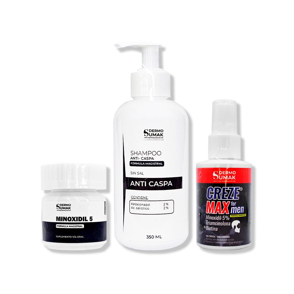 Minoxidil Caps 60 + Shampoo Anticaspa 350ml + Creze Max Formen