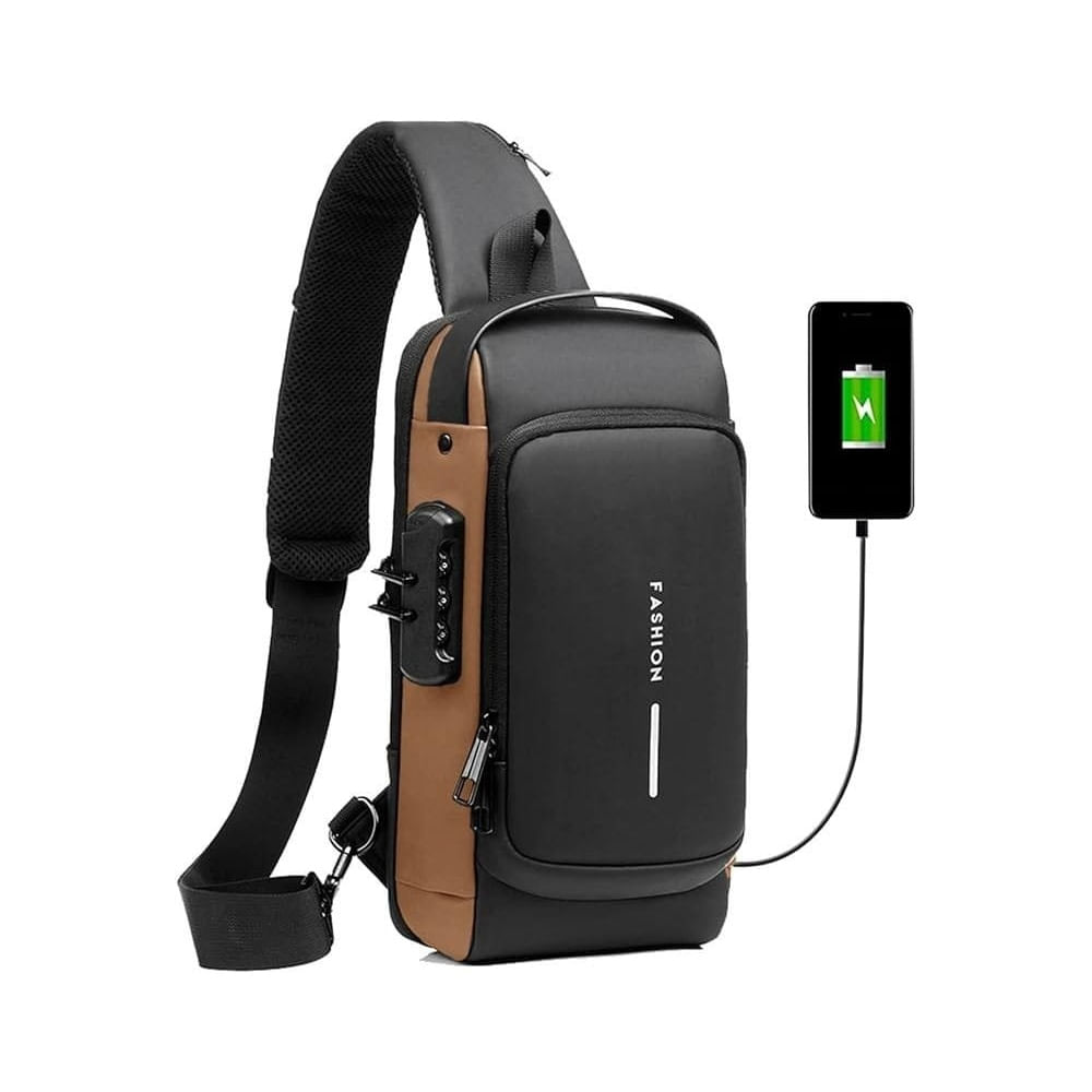 Mochila antirrobo con puerto USB negro y bronce