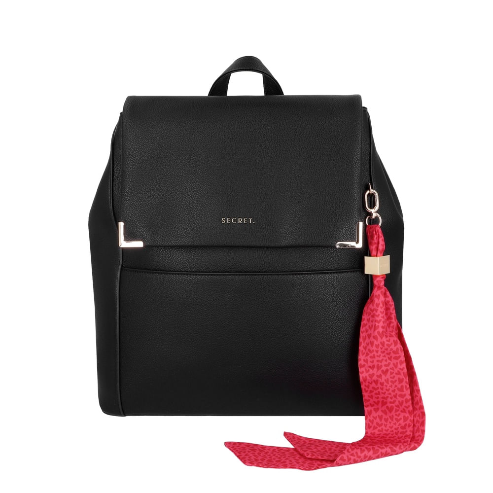 | Otros Atributos Destacables | Hay mochilas… y luego está la mochila grande Mother en color negro. Ideal para días donde llevas tu laptop, agenda, beauty bag y más. Su compartimento principal con cierre y tapa mantiene todo protegido, mientras el bolsillo frontal plano y el bolsillo posterior con cierre suman funcionalidad. El pañuelo decorativo desmontable le da ese toque fashion que no pasa desapercibido. • Interior con bolsillos organizadores, bolsillo con cierre y portallaves. • Compartimento principal con cierre y tapa. • Bolsillo posterior con cierre. • Asa corta y correas largas regulables. • Incluye pañuelo decorativo desmontable. Compra esta mochila grande en Secret y hazla tu statement bag. |