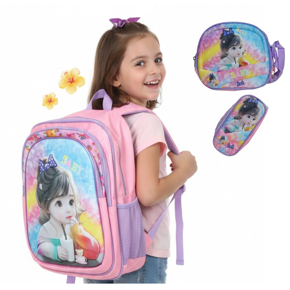 Mochila Escolar para Niños y Niñas Sirenita Baby Rosado Cartuchera Lonchera - Mochila Escolar para Niños Multipack Regreso al Colegio Megapack Infantil Luces