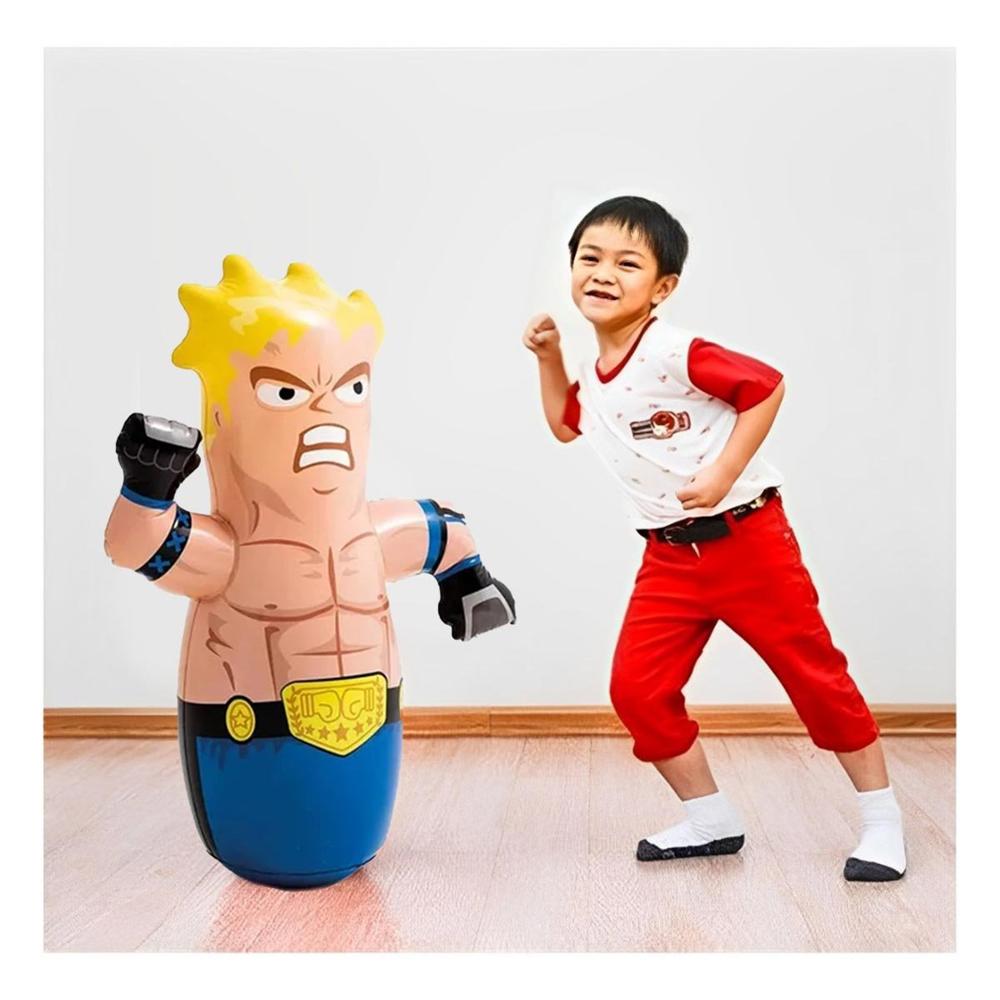 Muñeco Inflable de Color Azul con Base de Arena de Boxeador para Juegos de Ninos Y+Papel Regalo