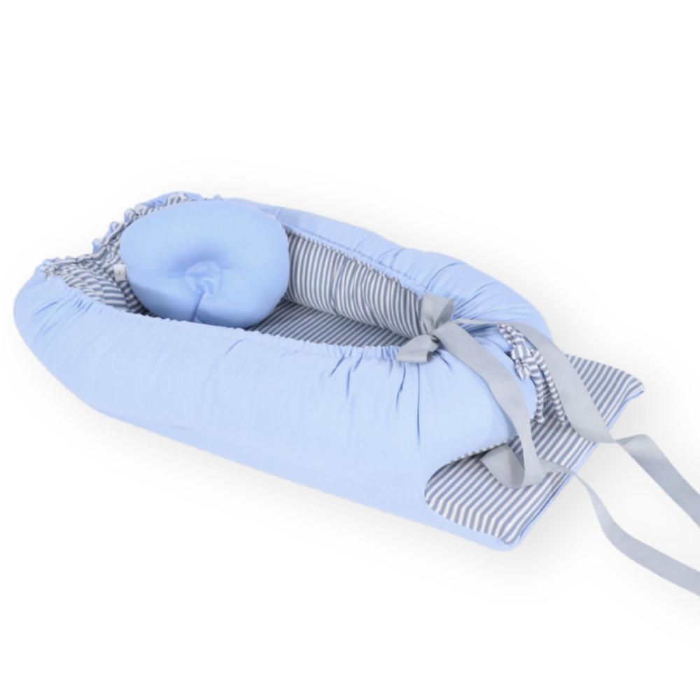 Nido Colecho Acolchonaditos Celeste Rayas Plomas