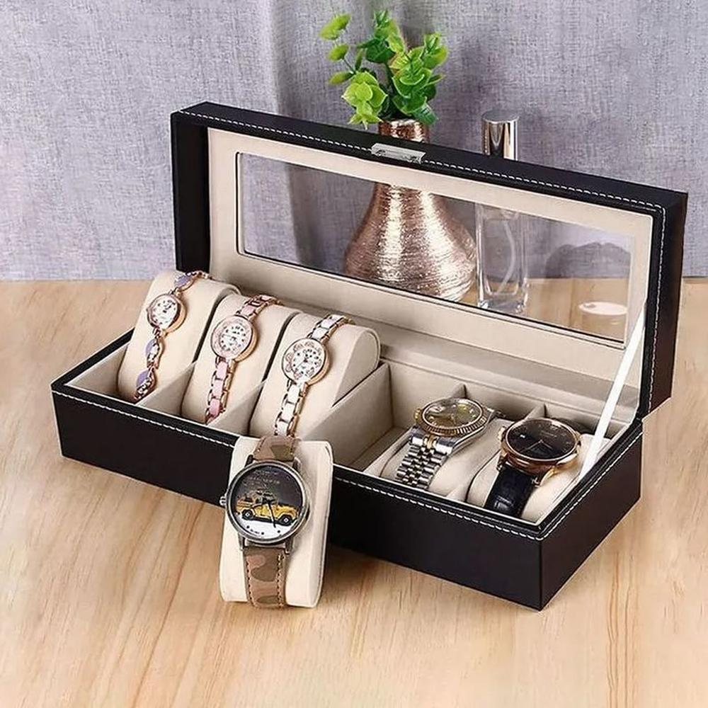 Organizador de Relojes 6 Compartimientos Portarelojes Exhibidor Negro