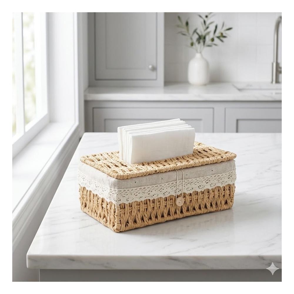 Organizador Servilletas Canasta Tejida con Forro Tela Beige 20x14x9cm Y+Regalo Sticker