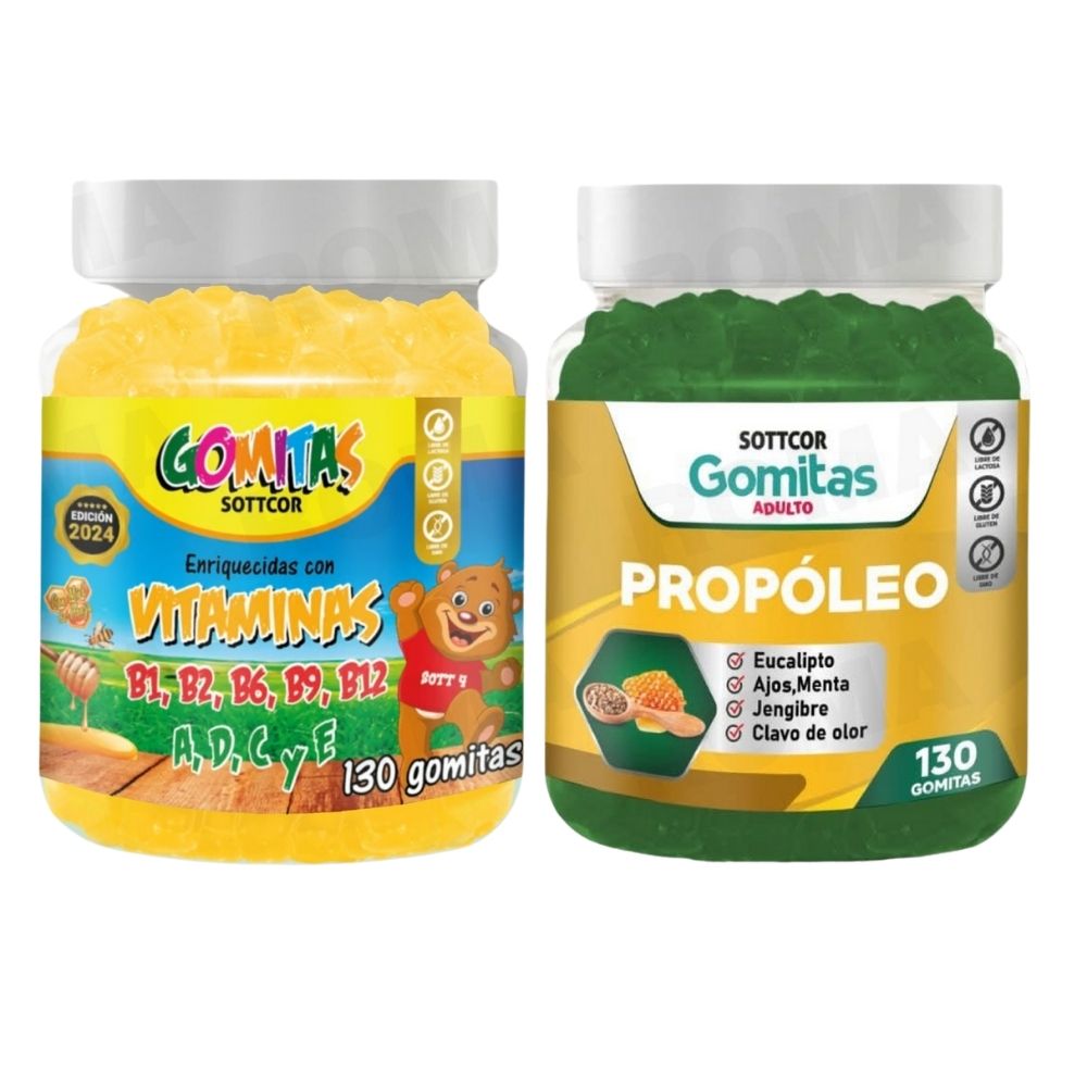 PACK 2 GOMITAS VITAMINAS PARA NIÑOS + PROPOLEO ADULTO 260 UND
