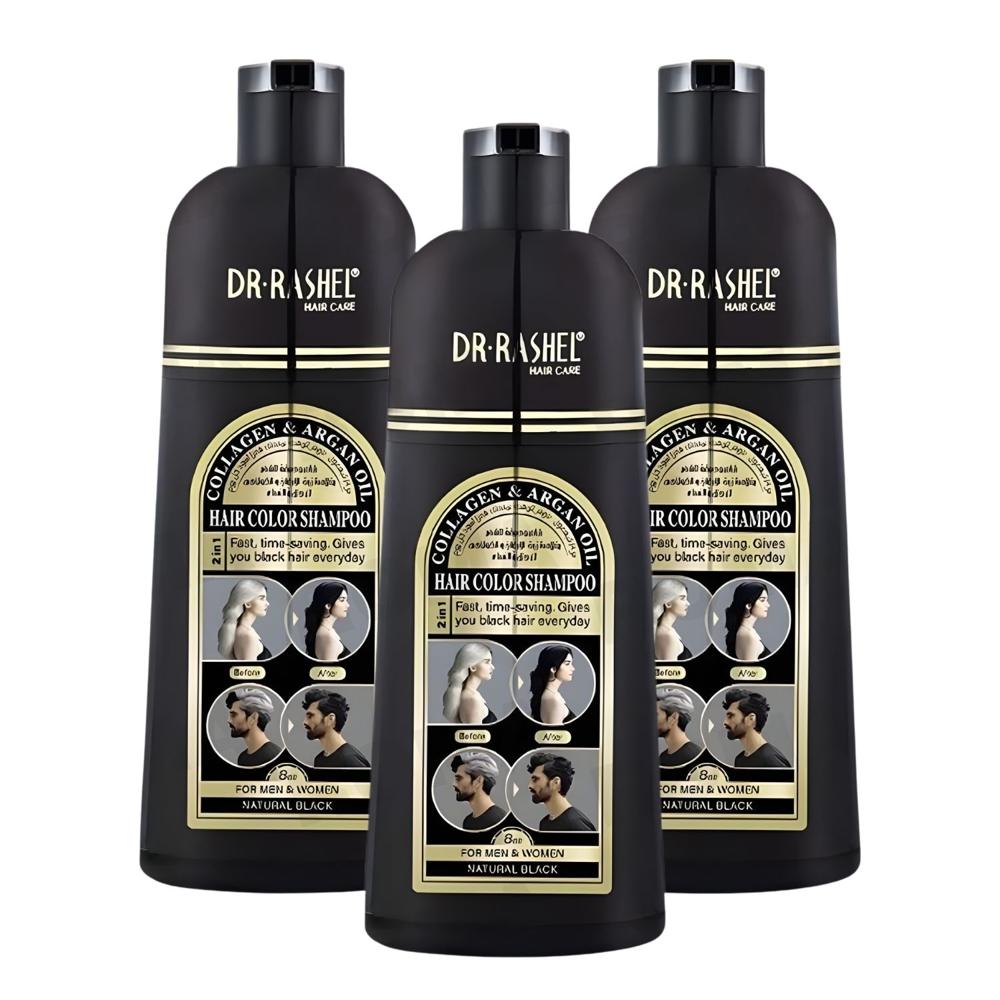 PACK 3 SHAMPOO TINTE COLÁGENO Y ACEITE DE ARGÁN NEGRO 400ML DR RASHEL