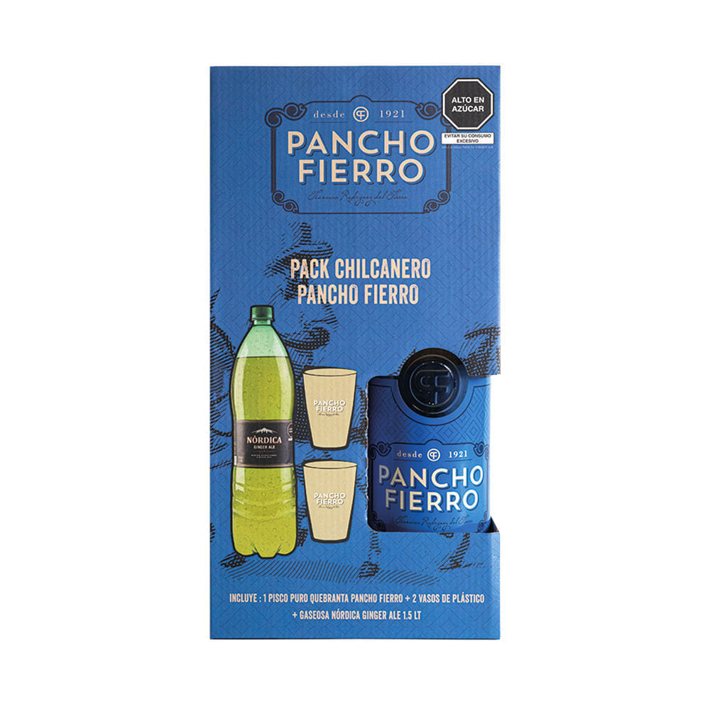 Pack Chilcanero PANCHO FIERRO Pisco Puro Quebranta + 2 Vasos de Plástico + Gaseosa Nórdica Ginger Ale Paquete 4un