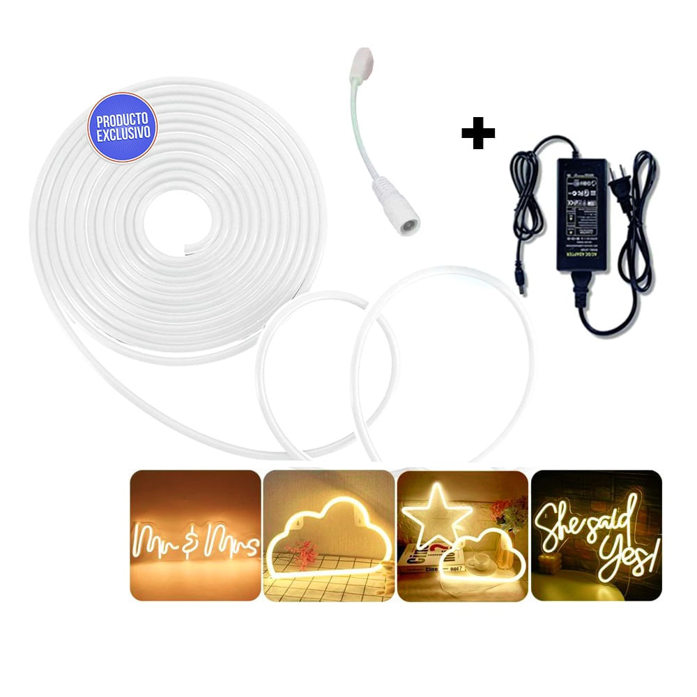 Pack Cinta Led 5 metros 12v Blanco Calido Neón más Transformador
