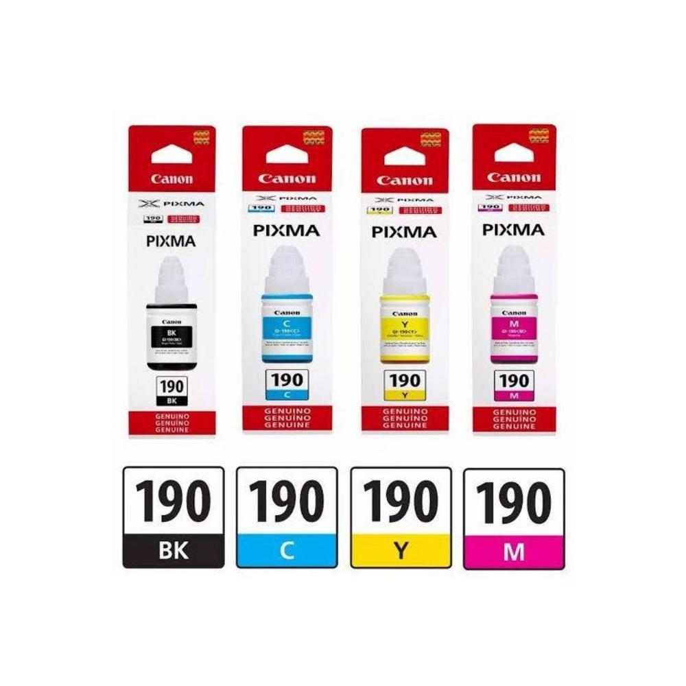 Pack de Tinta de Impresión Canon GI-190 Negro, Cian, Magenta, Amarillo