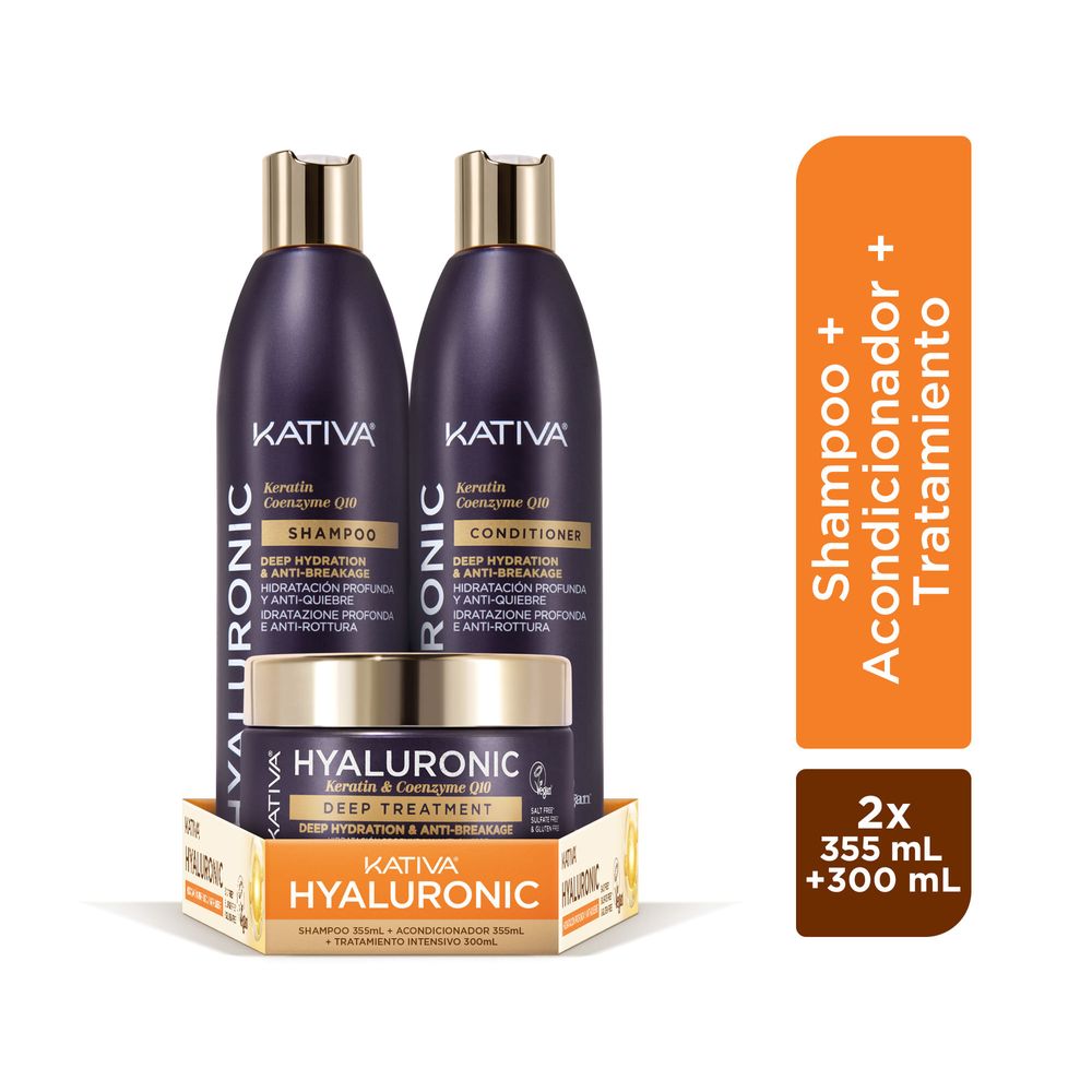 Pack KATIVA Shampoo Hyaluronic Oil 355ml + Acondicionador 355ml + Tratamiento 300ml