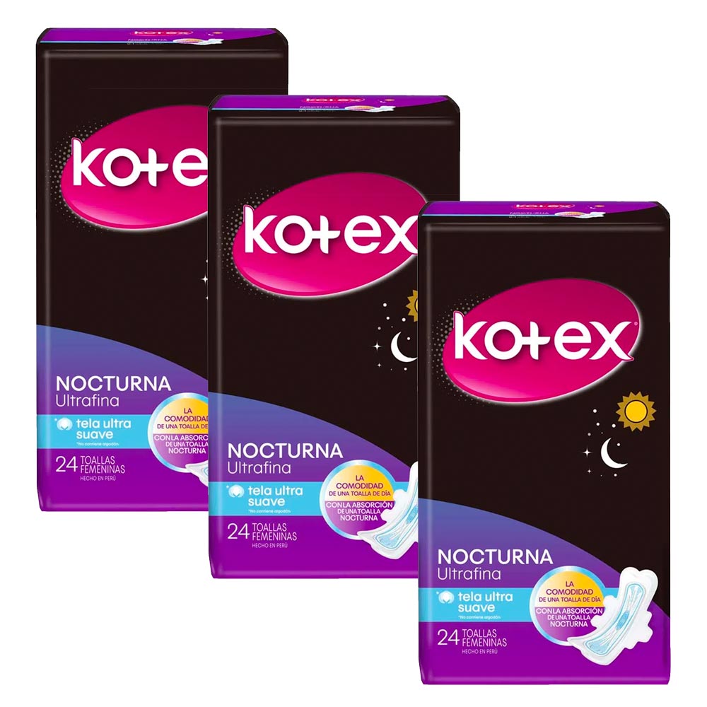 Pack Toalla Higiénica Nocturna KOTEX Paquete 24un x 3un