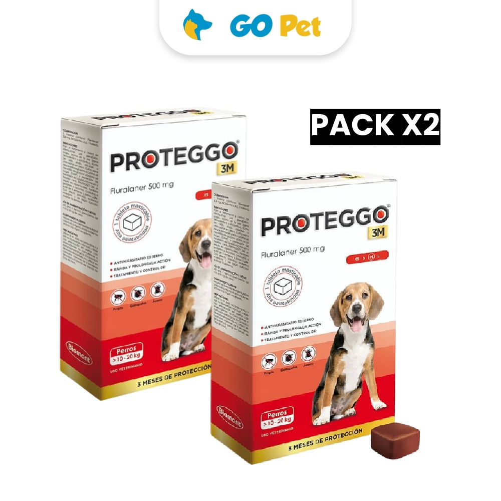 Pack x2 Antipulgas para Perros Proteggo 3M de 10 a 20 Kg x 1 Tableta
