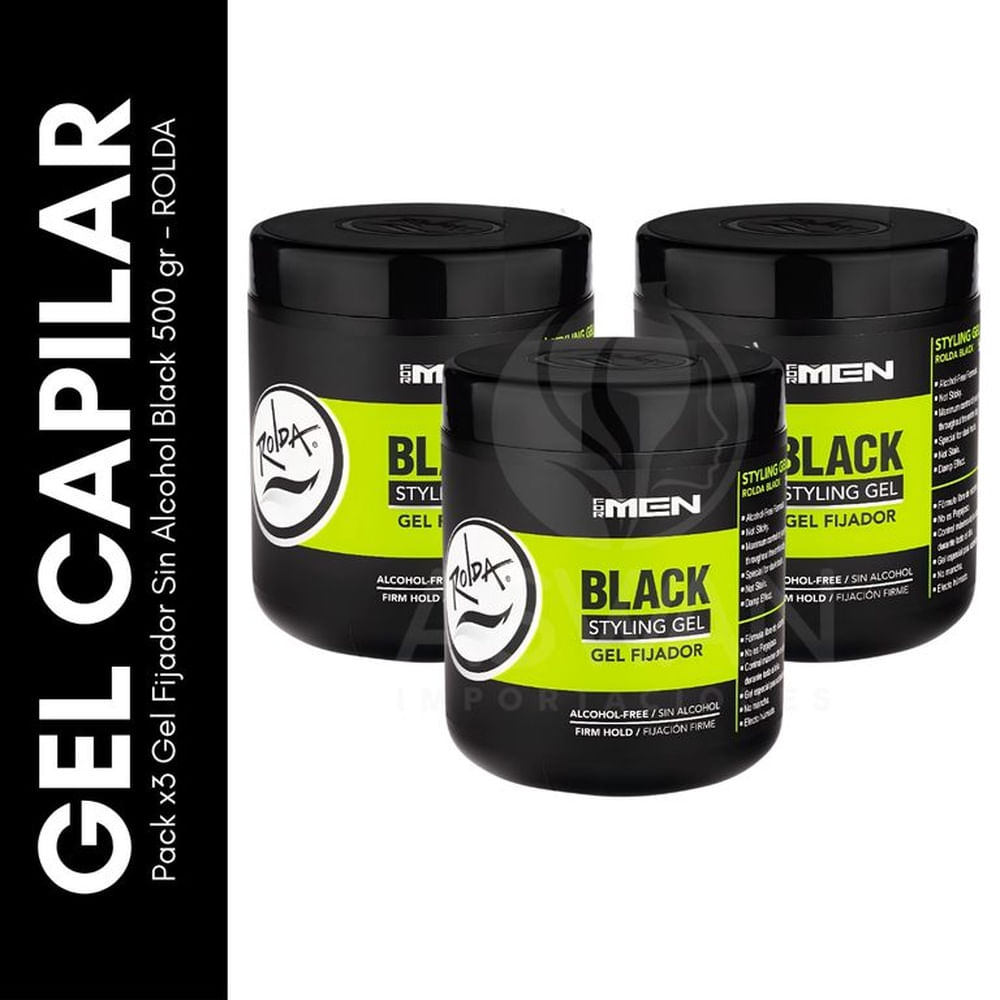 Pack x3 Gel Fijador Sin Alcohol Black 500 gr - ROLDA