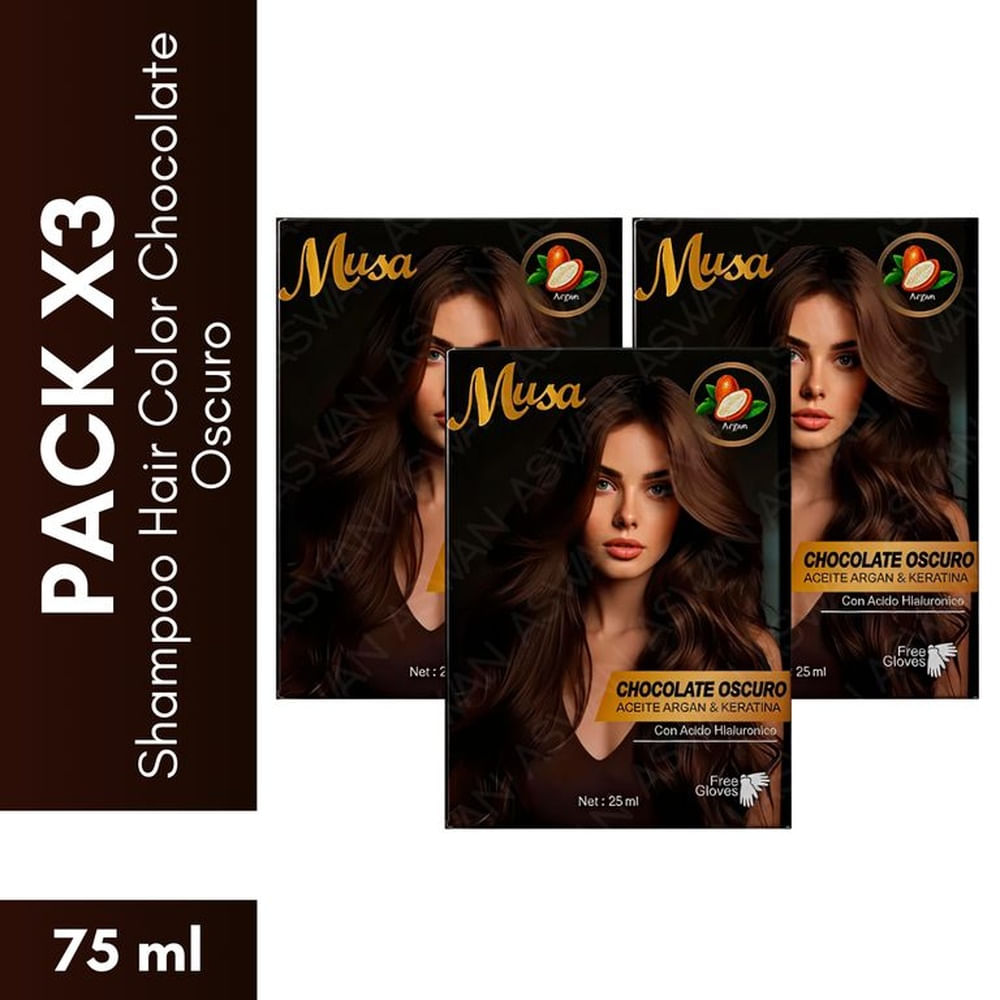 Pack x3 Shampoo Hair Color Chocolate Oscuro 25 ml - MUSA