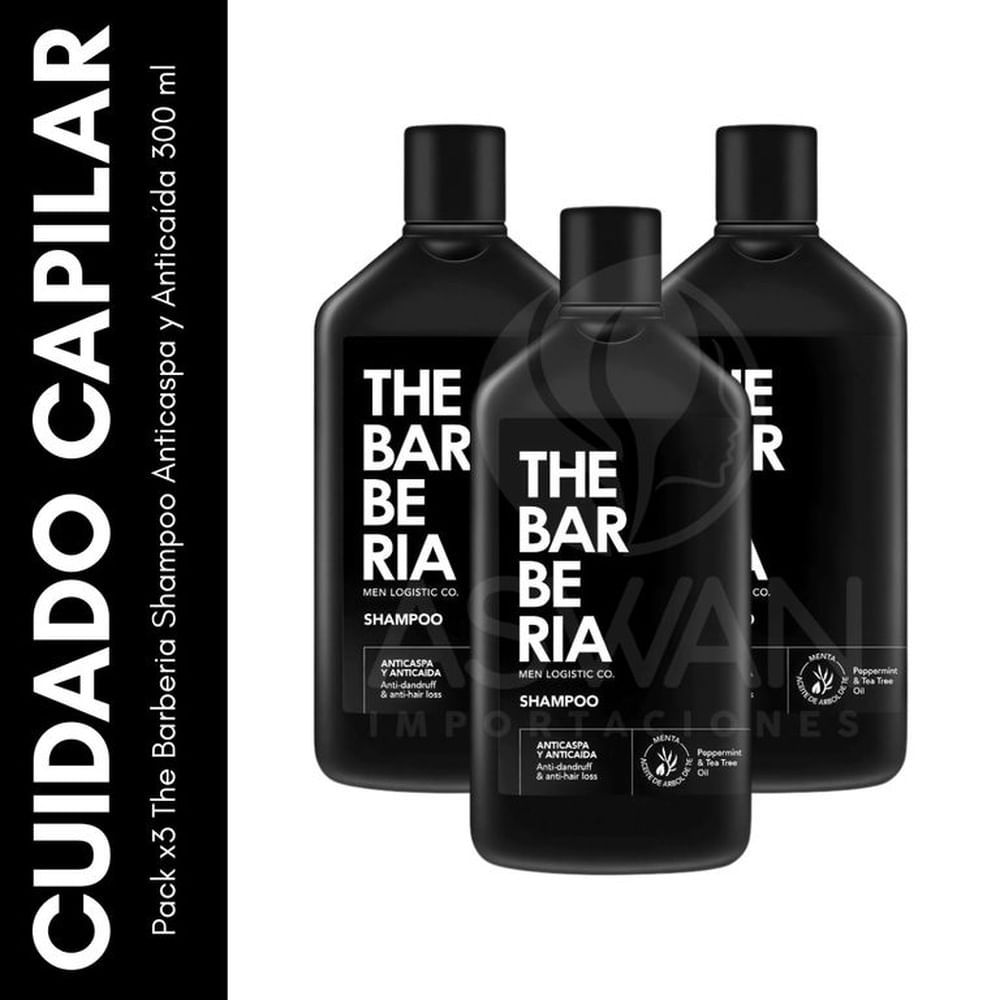 Pack x3 The Barberia Shampoo Anticaspa y Anticaída 300 ml