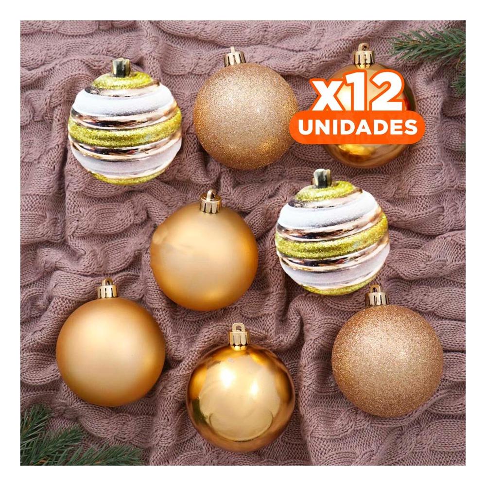 Pack12 Decoracion de Navidad Arbol en Champagne Y+Regalo Stickers