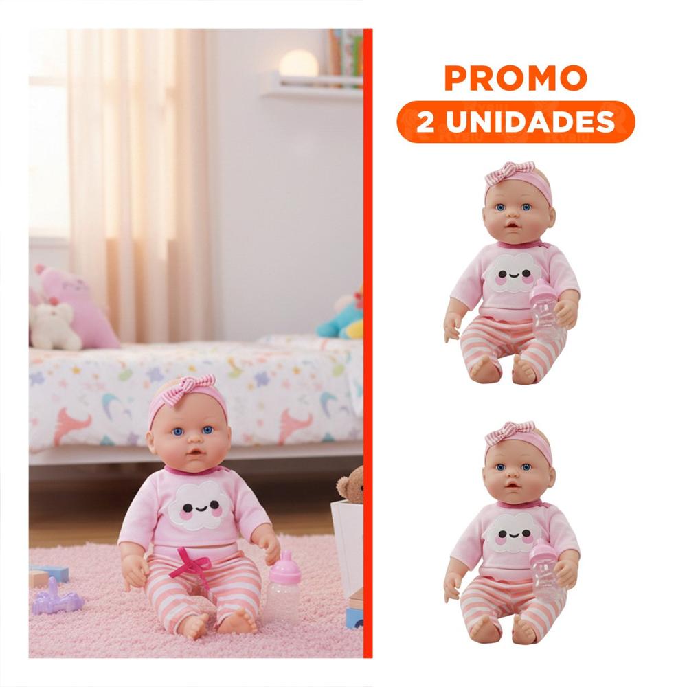 Pack2 Muneca Tierno Rosada con Chompa Nube y Pantalon Rayas para Bebe en Casa
