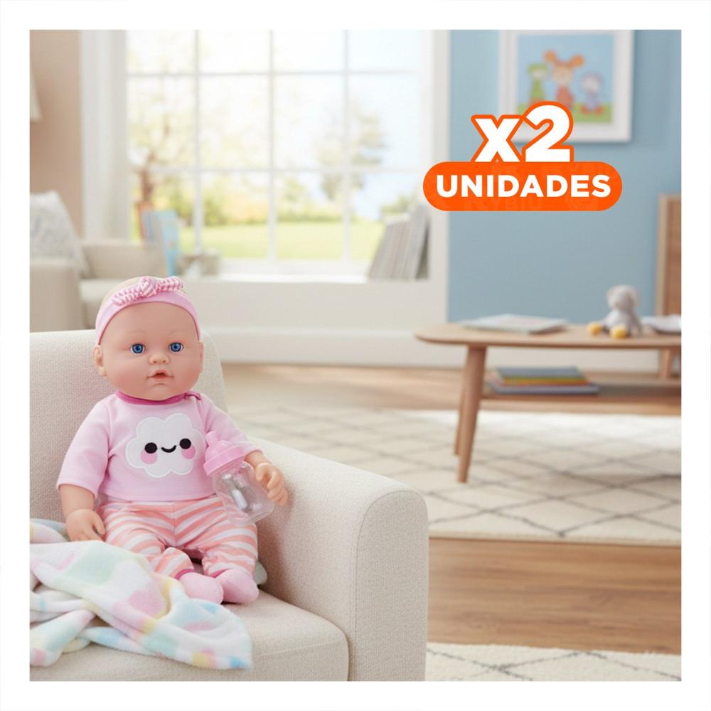 Pack2 Pelucha Tierno Rosada con Chompa Nube y Pantalon Rayas para Bebe Casa Y+Regalo Sticker