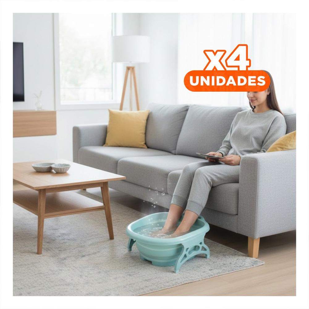 Pack4 Cuenca Portatil con Masajeador de Pies Celeste Facil de Limpiar y Guardar Y+Papel Regalo