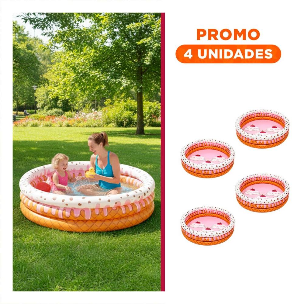 Pack4 Pileta Inflable Decorativa con Diseno Helado para Patio y Jardin Y+Regalo Sticker
