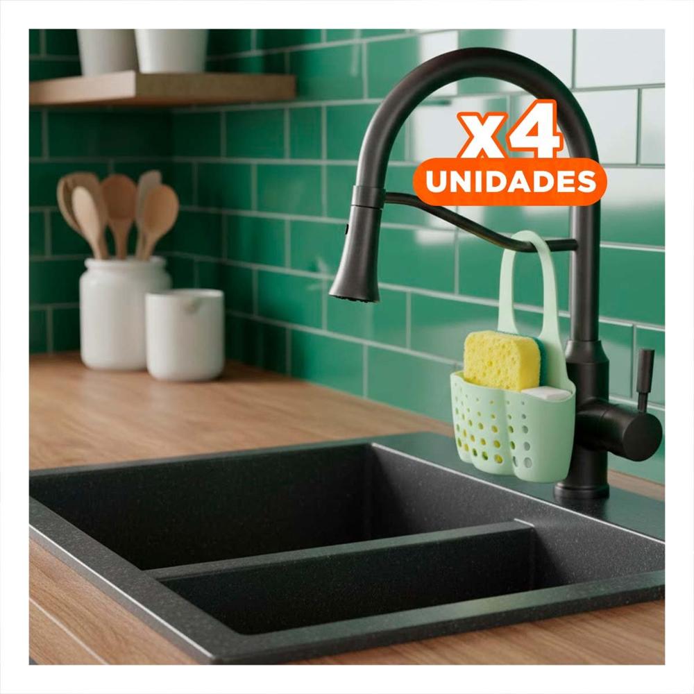 Pack4 Receptaculo Colgante Verde para Organizar Esponjas y Accesorios 19x15cm
