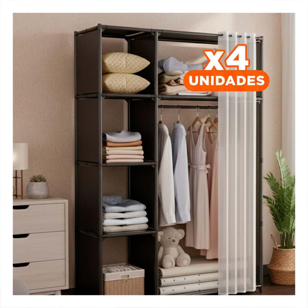 Pack4 Ropero Moderno de Ropa con Cortina Negro Abierto para Mantener Espacios Y+Papel Regalo