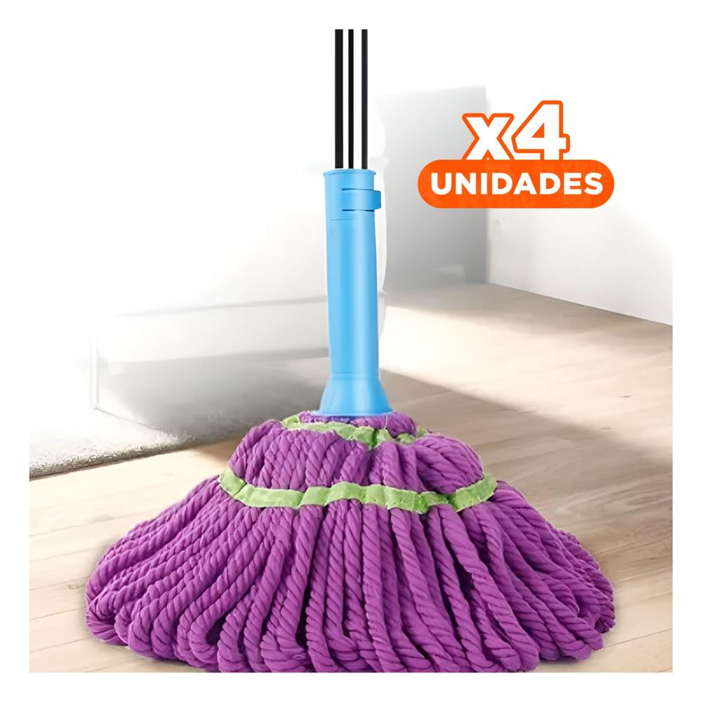 Pack4 Solucion de limpieza giratoria con autoexprimidor y mango practico para el hogar