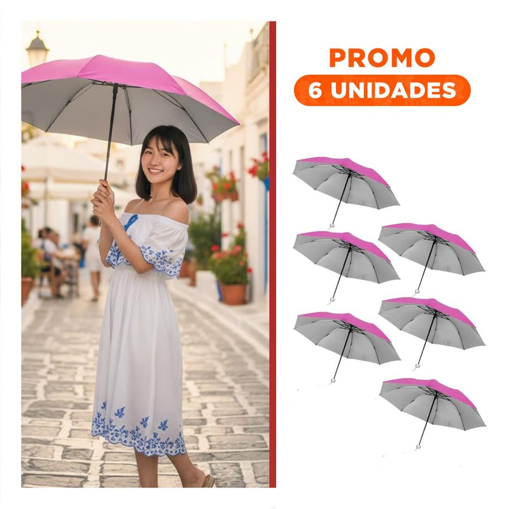 Pack6 Quitasol Plegable Portatil Compacto en Cartera Color Fucsia Y+Regalo Sticker
