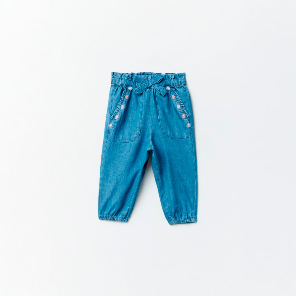 Pantalón Bebé Niña Sfera Light Denim Bordado Azul