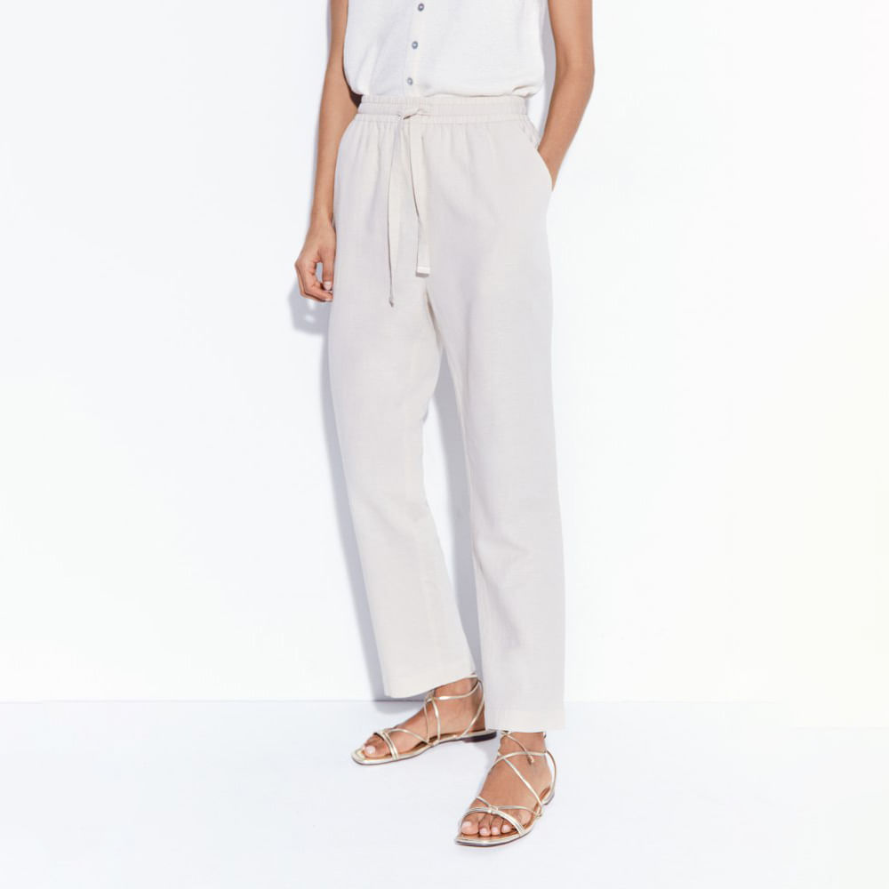 Pantalón Lino Básico Sfera Mujer Piedra