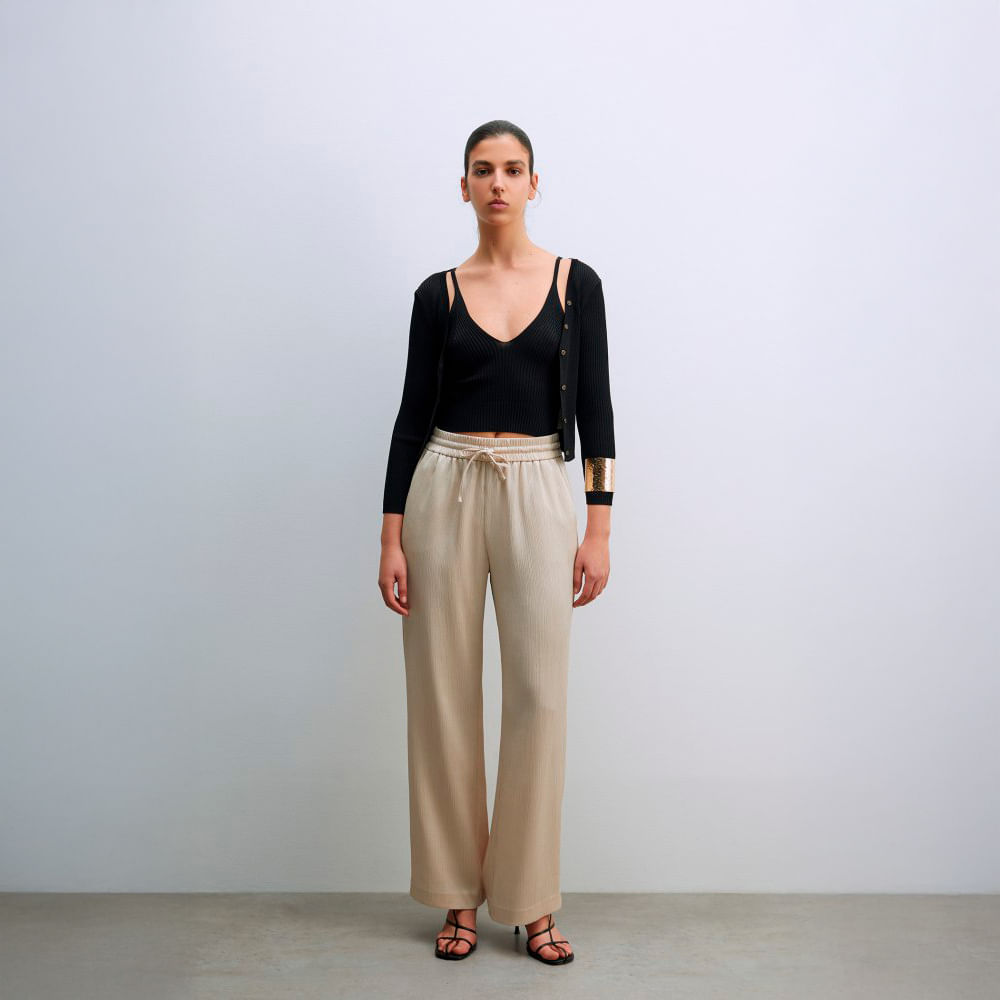 Pantalón Mujer Sfera Fluido Efecto Arruga Beige