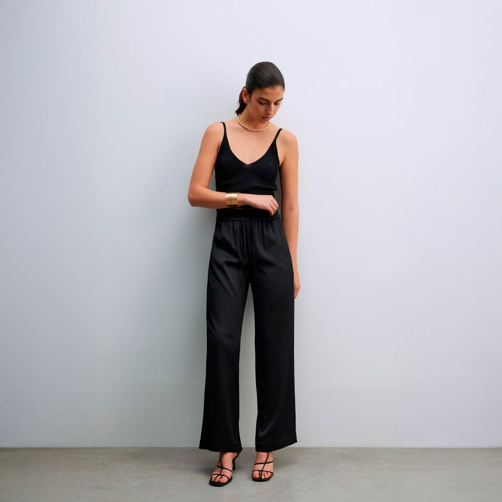 Pantalón Mujer Sfera Fluido Efecto Arrugado Negro