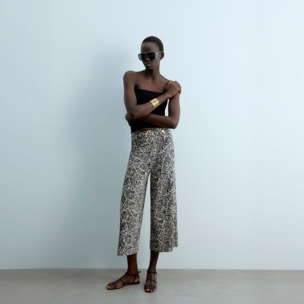 Pantalón Mujer Sfera Fluido Estampado Boto Negro
