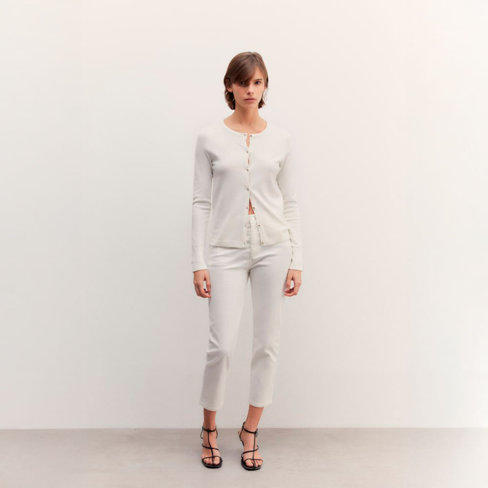 Pantalón Mujer Sfera Lino Cinturon Blanco