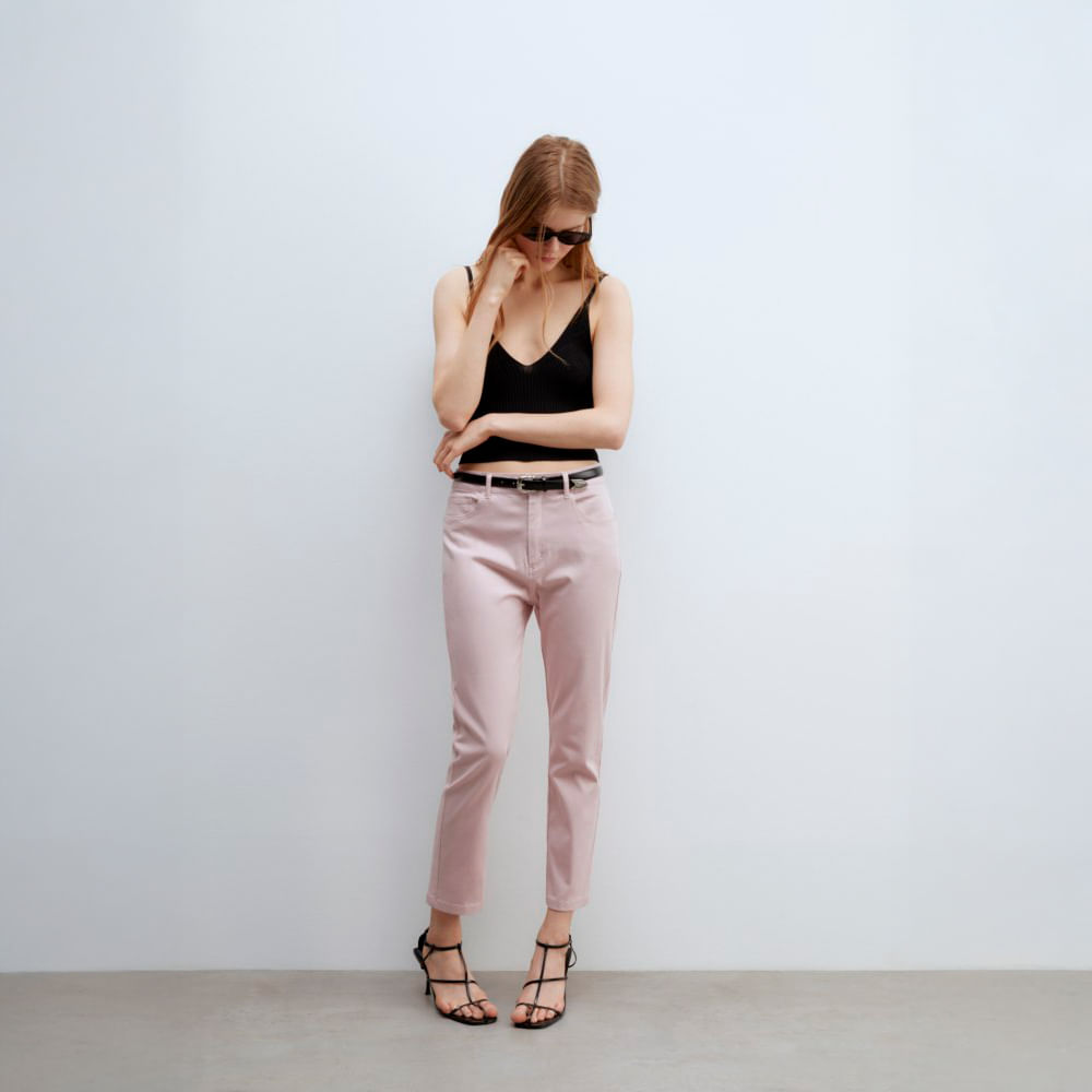 Pantalón Mujer Sfera Lino Cinturon Rosa