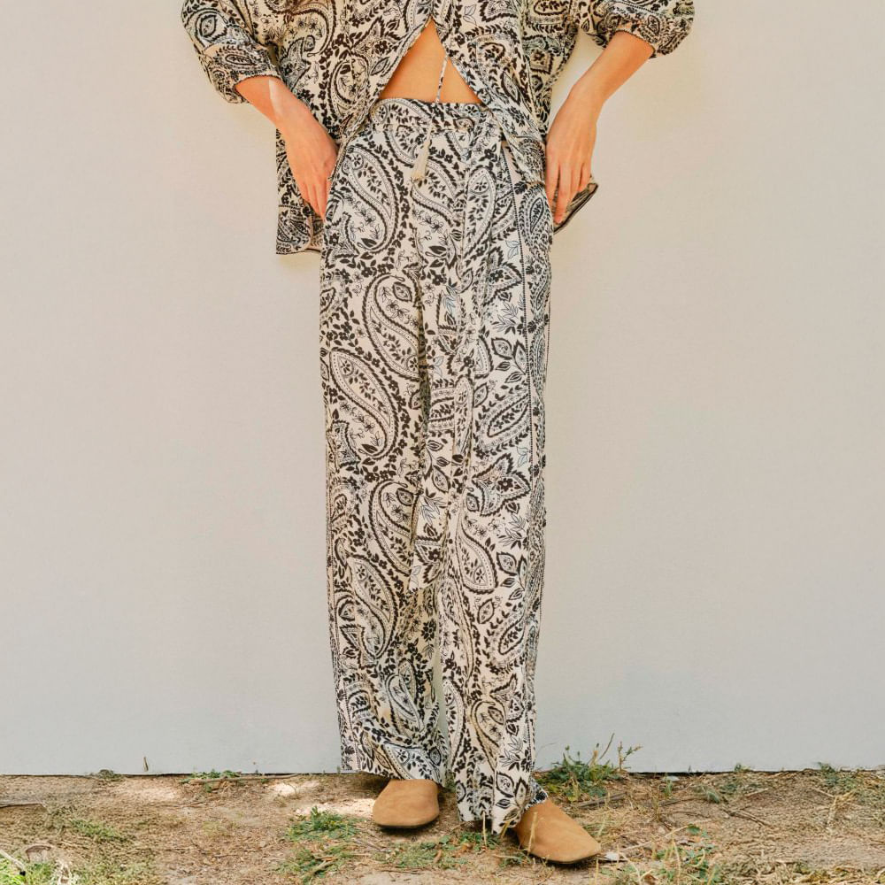 Pantalón Print Pañuelo Sfera Mujer Negro
