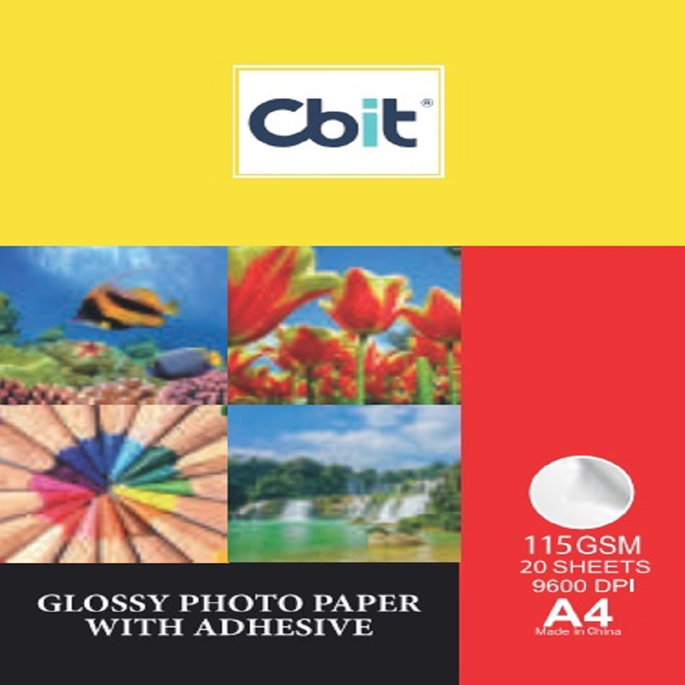 Papel Foto Brillo Adhesivo de 115gr - CBIT - Kit de 100 hojas