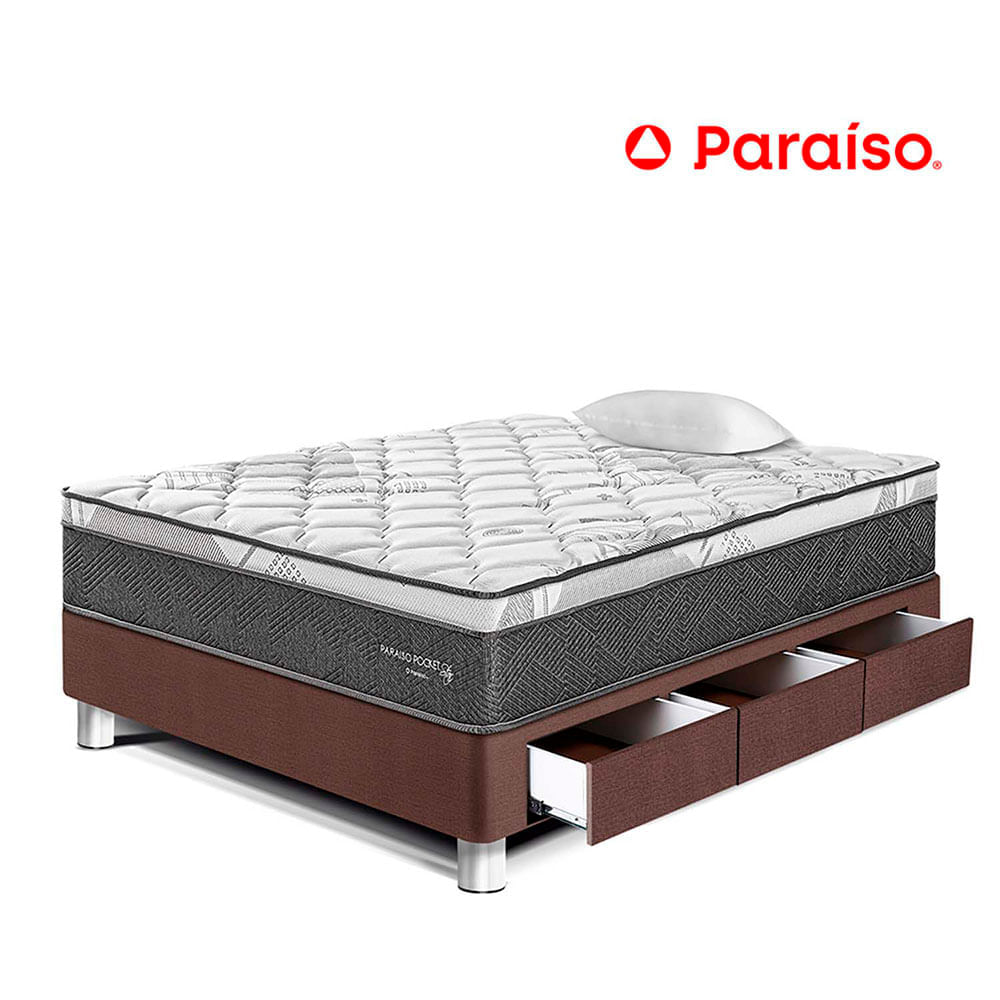 Cama Paraíso Pocket Star 1.5 Plz Con Cajones - Chocolate