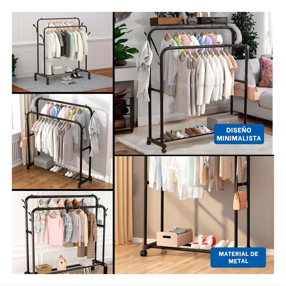 Perchero Estante Colgador Doble con 1 Nivel Inferior Color Negro Funcional