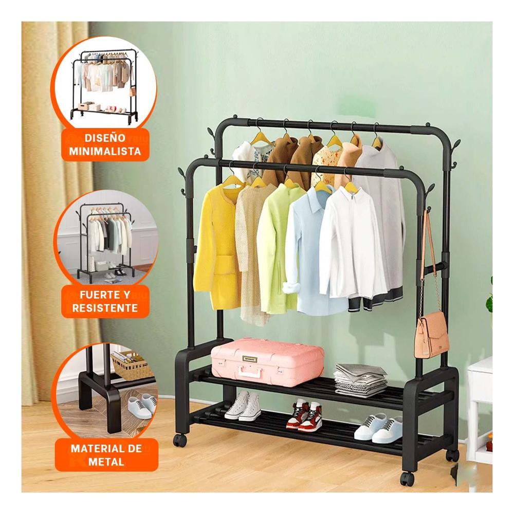 Perchero Estante Colgador Doble con 1 Nivel Inferior Negro Uso Versatil Y+Post It