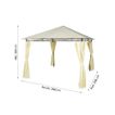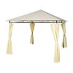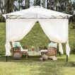 | Características | Cuenta con una estructura de metal de 4 columnas con acabado en pintura electrostática color negro, toldo o techo de tela Poliéster, ideal para protección ante lluvias y sol, viene con 4 cortinas de Poliester impermeable que cubren todo el perímetro de la pérgola, las cortinas y toldo se unen a la estructura con adhesivo pega-pega. |