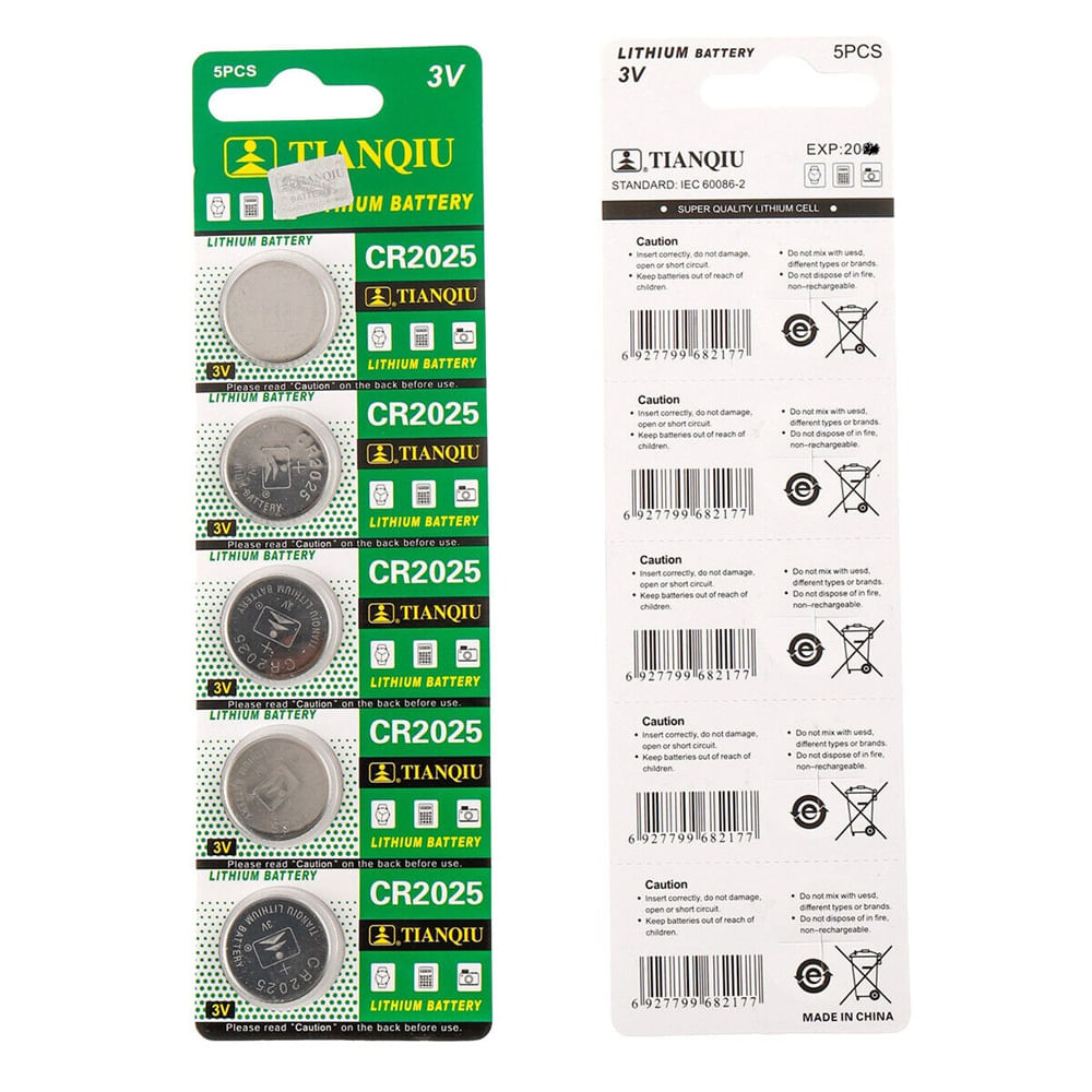 Pila Boton TIANQIU Cr2025 Litio. Blister de 05 pilas.