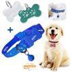 PLACA Y COLLAR PARA MASCOTAS CON CASCABEL - VERDE y AZUL PLACA VERDE y COLLAR AZUL