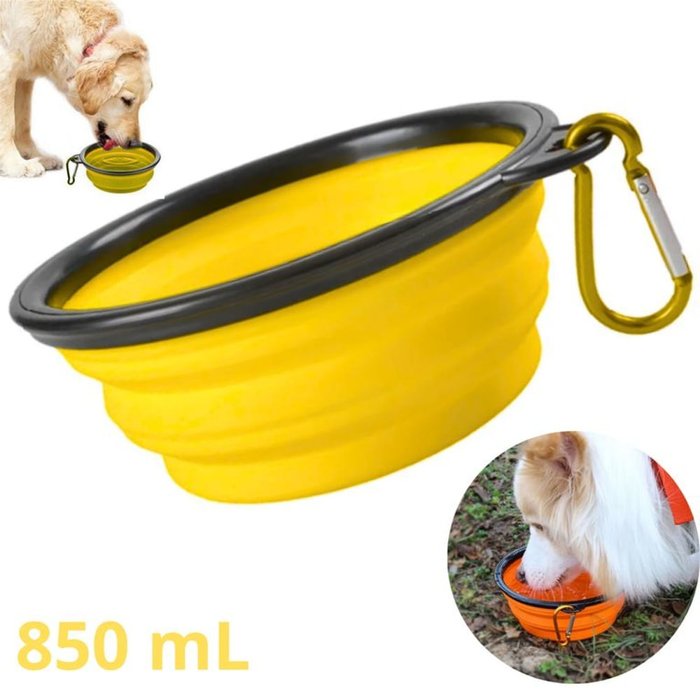 PLATO PORTATIL PLEGABLE PARA MASCOTA 850mL - AMARILLO AMARILLO
