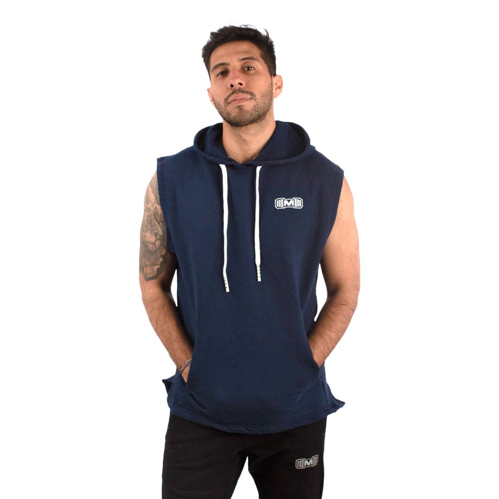 Polera Manga Cero Azul y Blanco Muscle Museum con Bolsillo Delantero con Cierre para Hombre