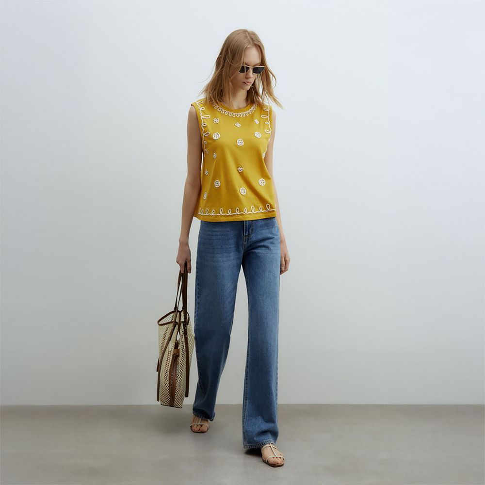Polo Mujer Sfera Bordada Contraste Mostaza