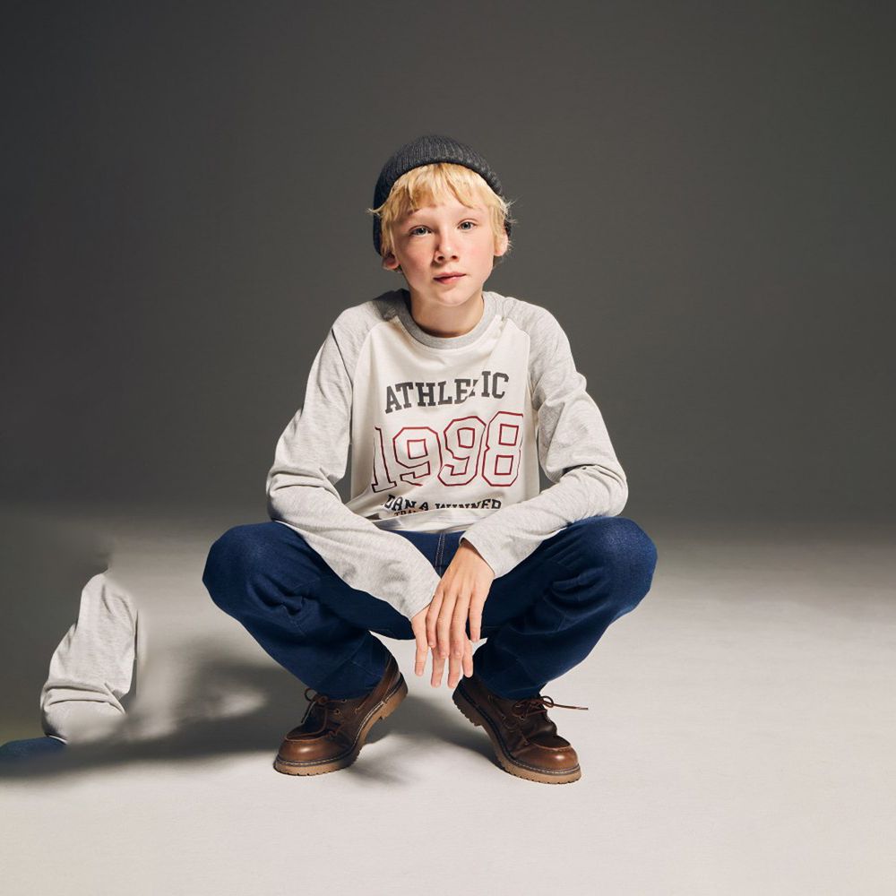 Polo Niño Sfera Manga Ranglan Gris Claro
