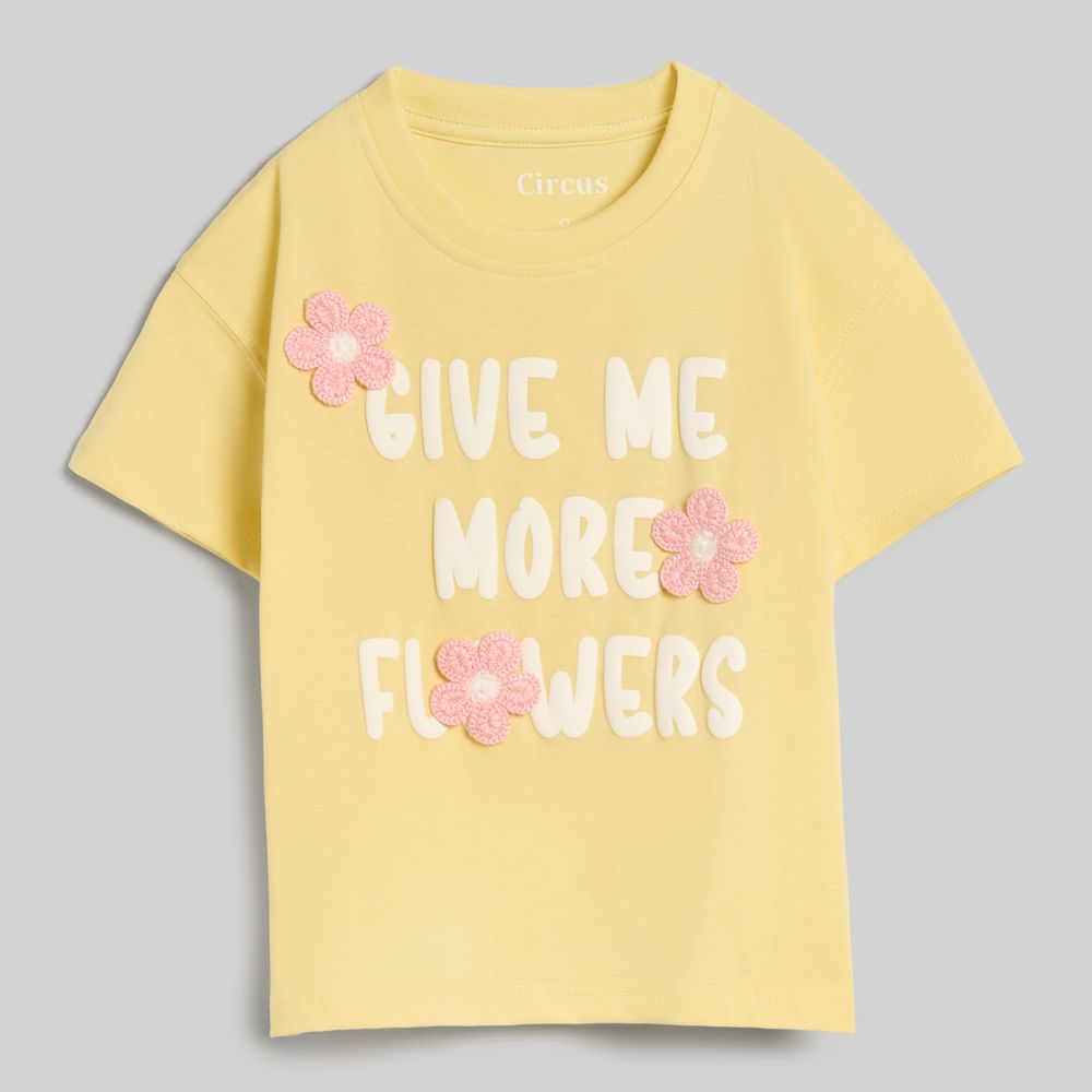 | Modelo | POLO DE NIÑA MANGA CORTA CON FRASE Y APLICACION CROCHET |