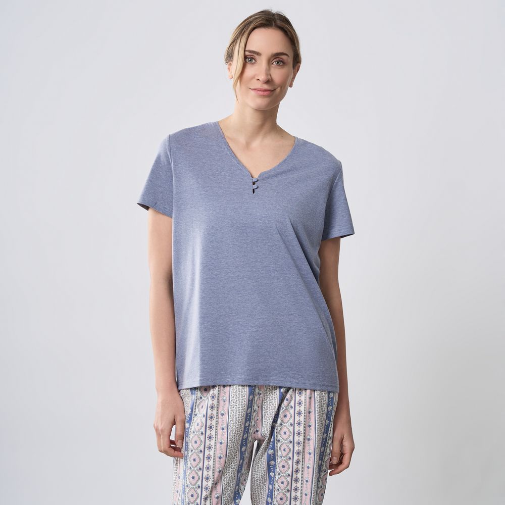 Polo Pijama Mujer V Neck Zafin Manga Corta Algodón
