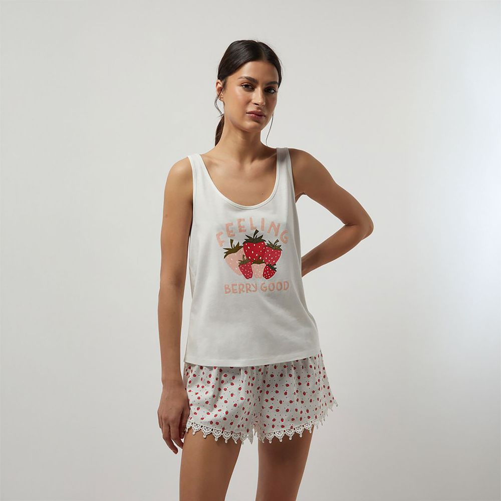 Polo Pijama Sfera Mujer Fresas Blanco Roto